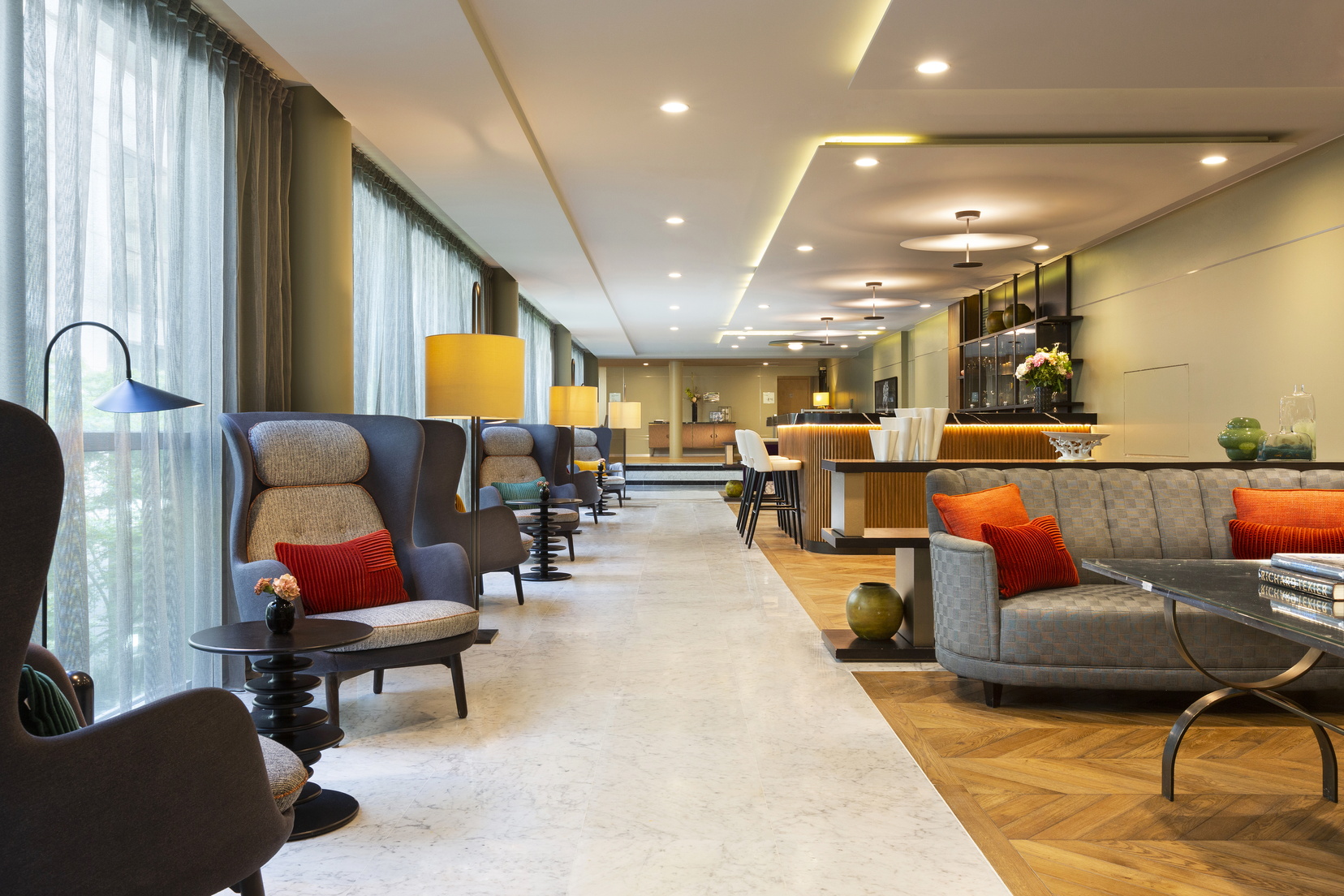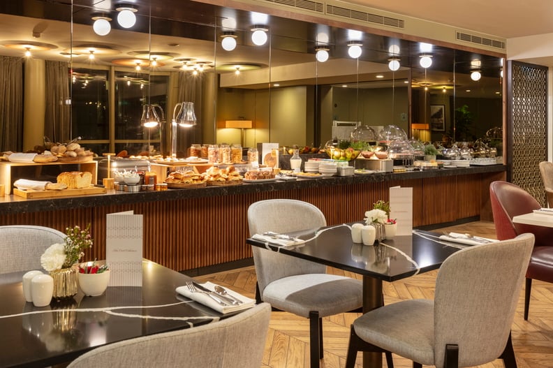 Beginnen Sie jeden Morgen in unserem Frühstücksraum, wo eine Auswahl köstlicher Speisen für Sie bereitsteht. Am Abend lädt unsere sophistizierte Bar zu einem Drink in raffinierter Atmosphäre ein, perfekt für einen Aperitif oder um den Tag abzurunden.