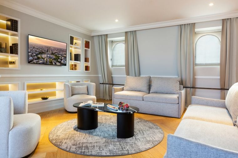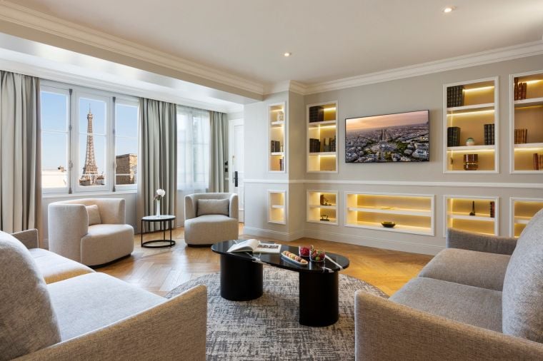 Jedes Zimmer und Apartment ist ein Juwel der Raffinesse, mit Dekorationen, die von der Weltausstellung von 1889 inspiriert sind, und aus edlen Materialien gefertigt sind.
