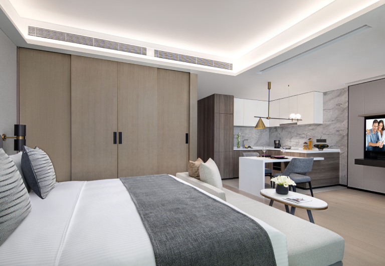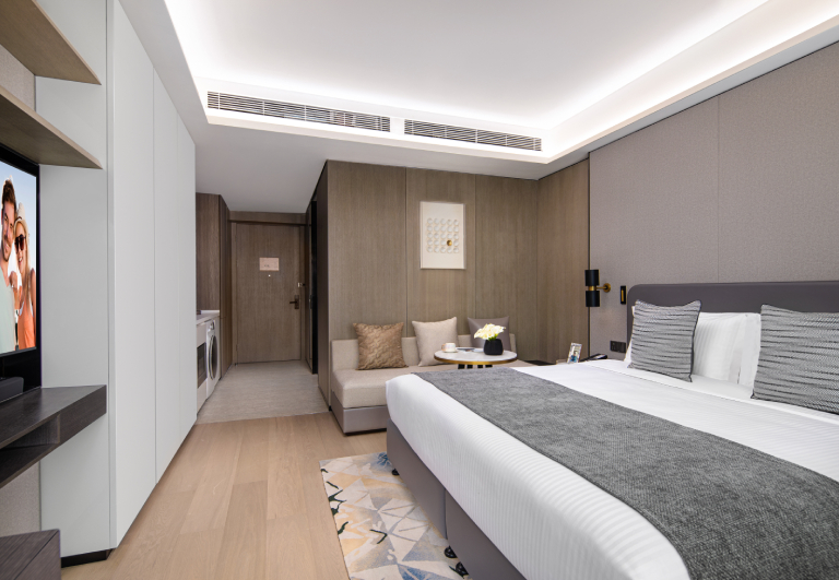 Ascott ICC offers 260 elegant luxury apartments in Guangzhou ranging from Studio Deluxe to Two-Bedroom Premier for business and leisure travellers. Each apartment is designed with spacious living space and a fully-equipped kitchen, high-quality home entertainment system and a full set of multifunctional household appliances. More services like multilingual reception, room cleaning services, 24-hour security and CCTV systems also guarantee our guests a private yet comfortable living experience regardless of the length of their stay.
