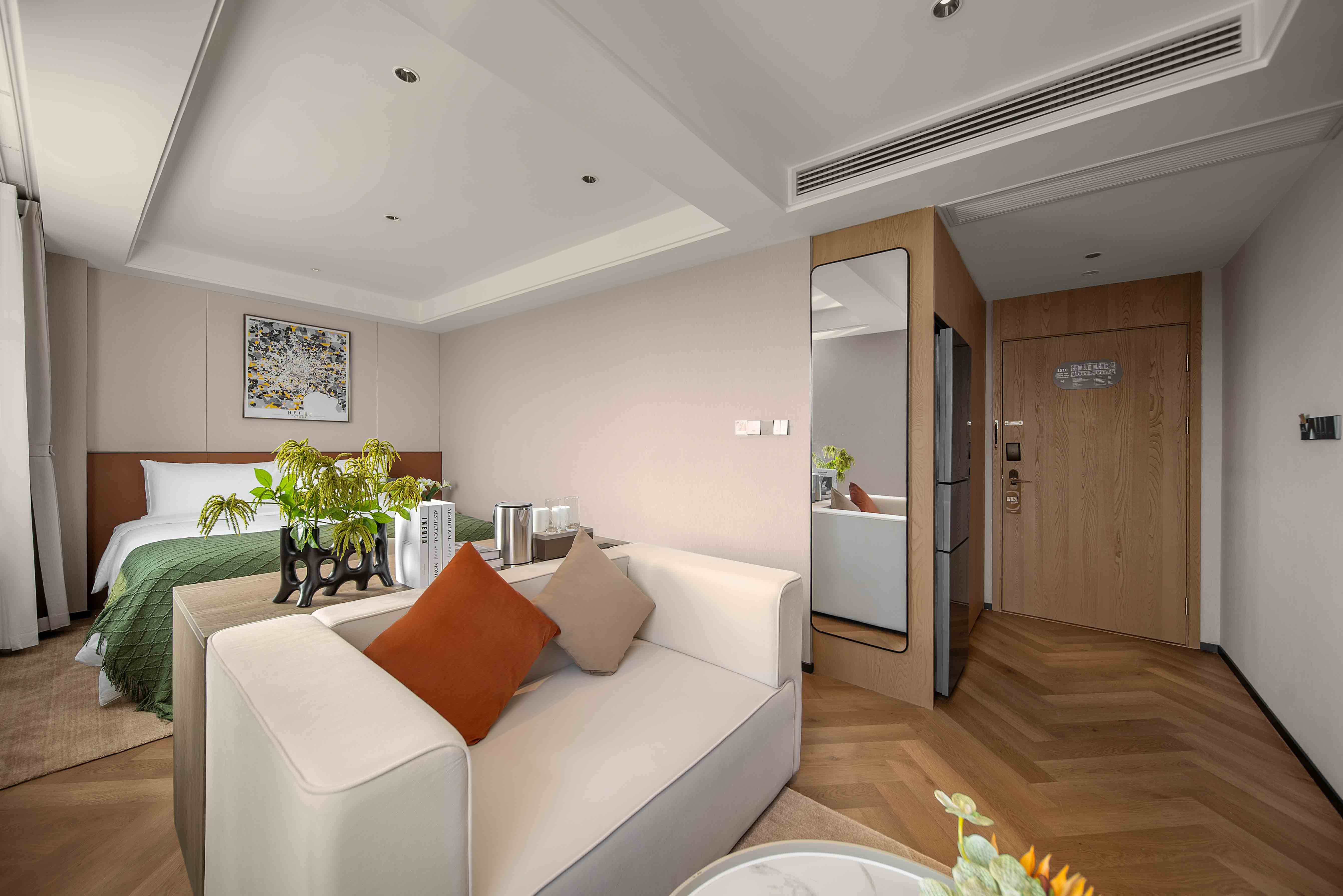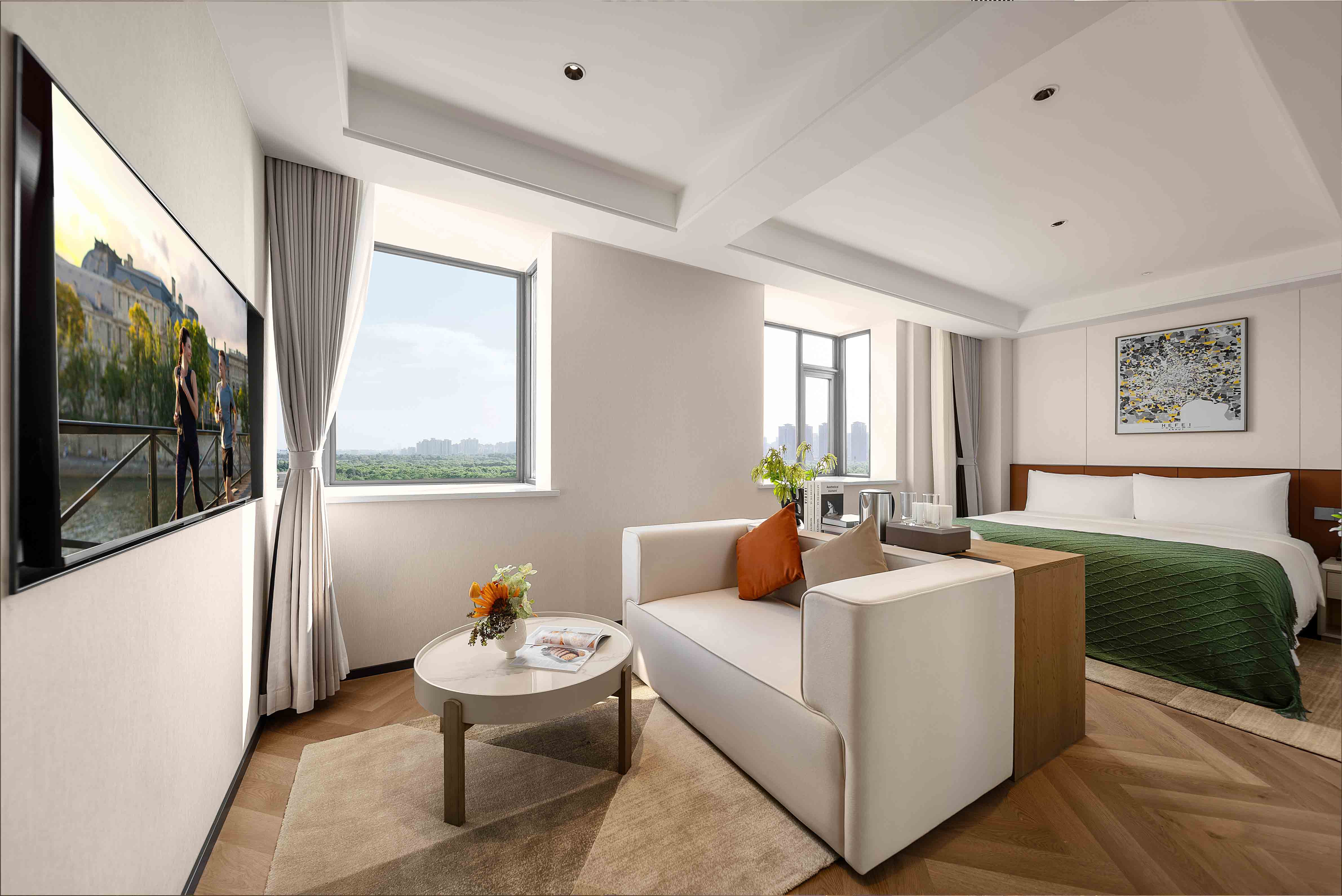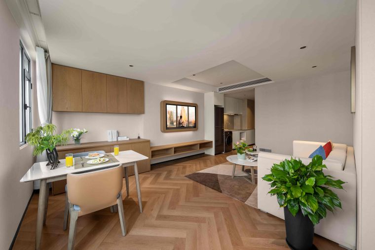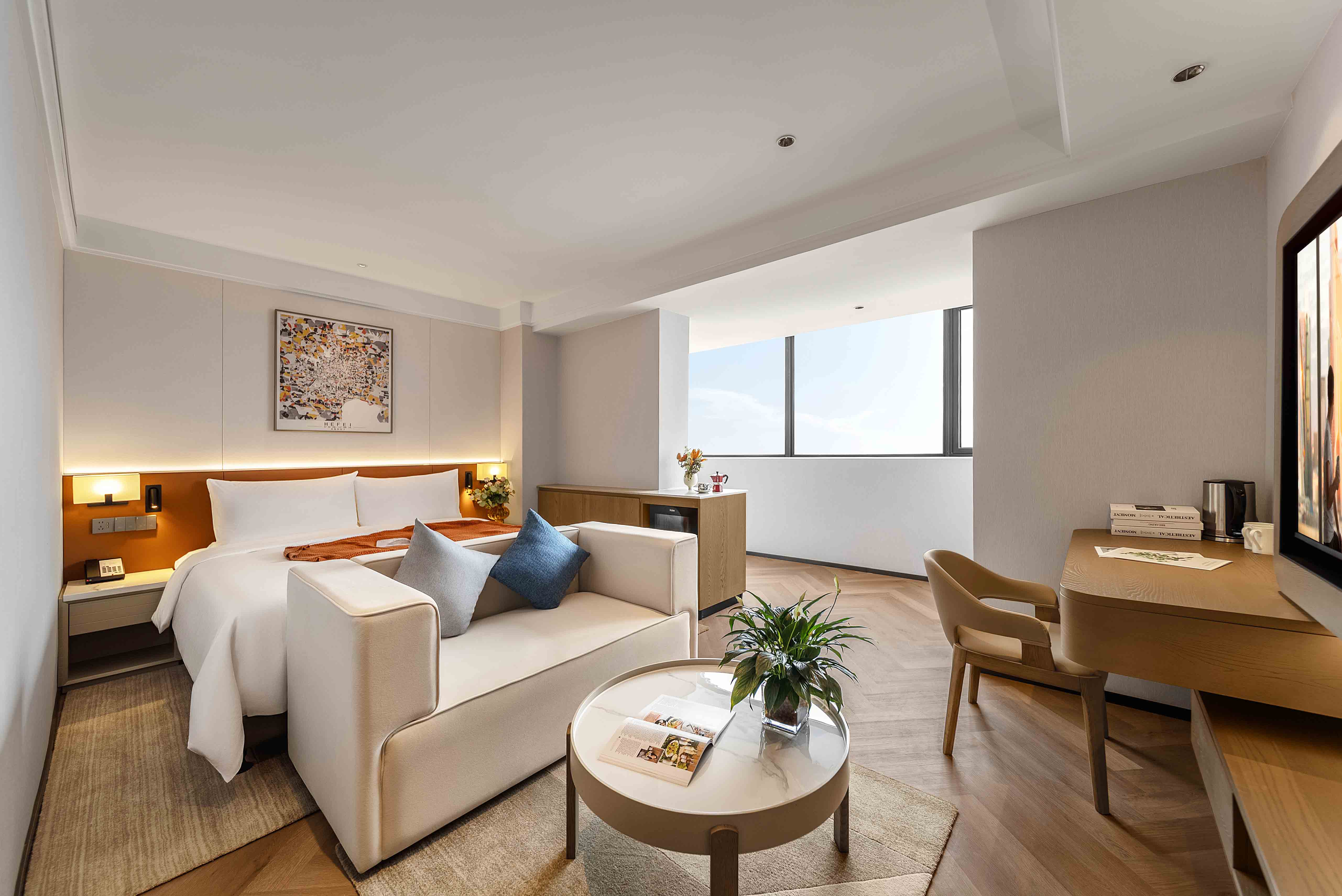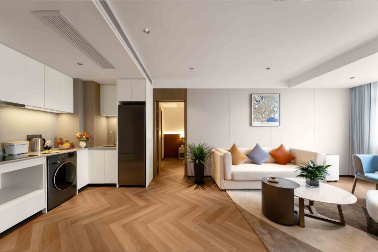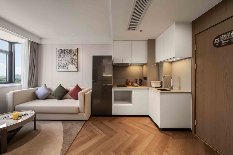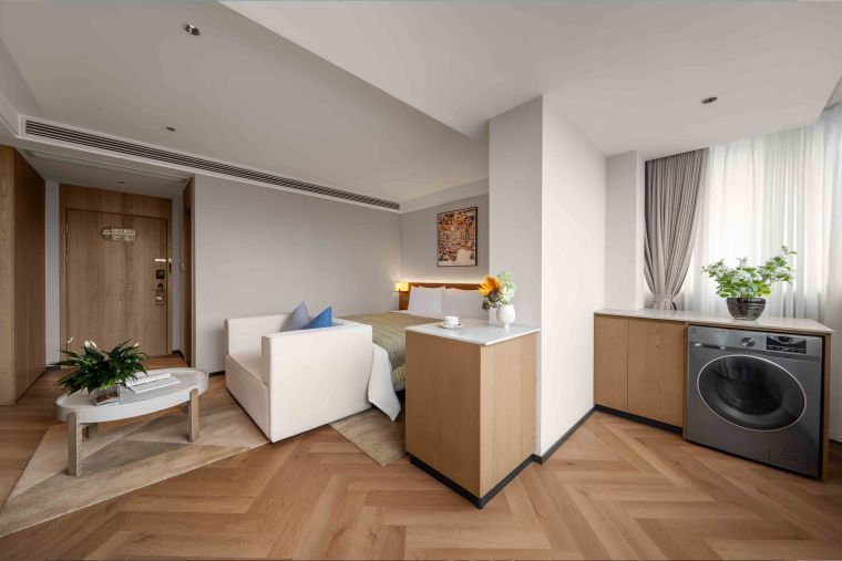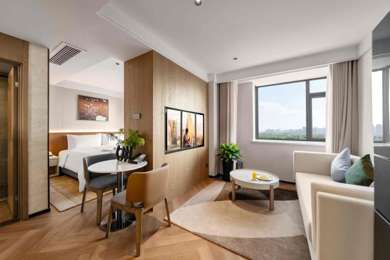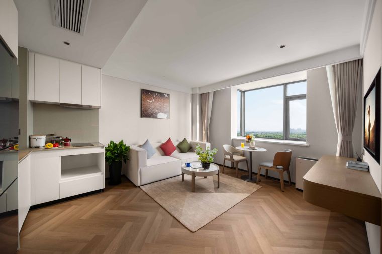 The meticulously designed property offers 182 well-appointed suites that blend contemporary style with intuitive comfort, ranging from deluxe studio apartments to spacious two-bedroom suites—each tailored to flexibly accommodate solo travelers, couples, and families alike. Subtle Hefei-inspired touches are woven into the soft furnishings, including artwork that reflects the city’s unique culture. Every suite embodies Citadines’ “thoughtfully designed home” philosophy, with a living area, dedicated dining space, fully equipped kitchen (complete with a refrigerator and washer-dryer combo), and a premium audio-visual system. These amenities recreate the warmth and convenience of home in every detail—from daily routines to leisure moments—easing concerns for both short stays and extended residences.