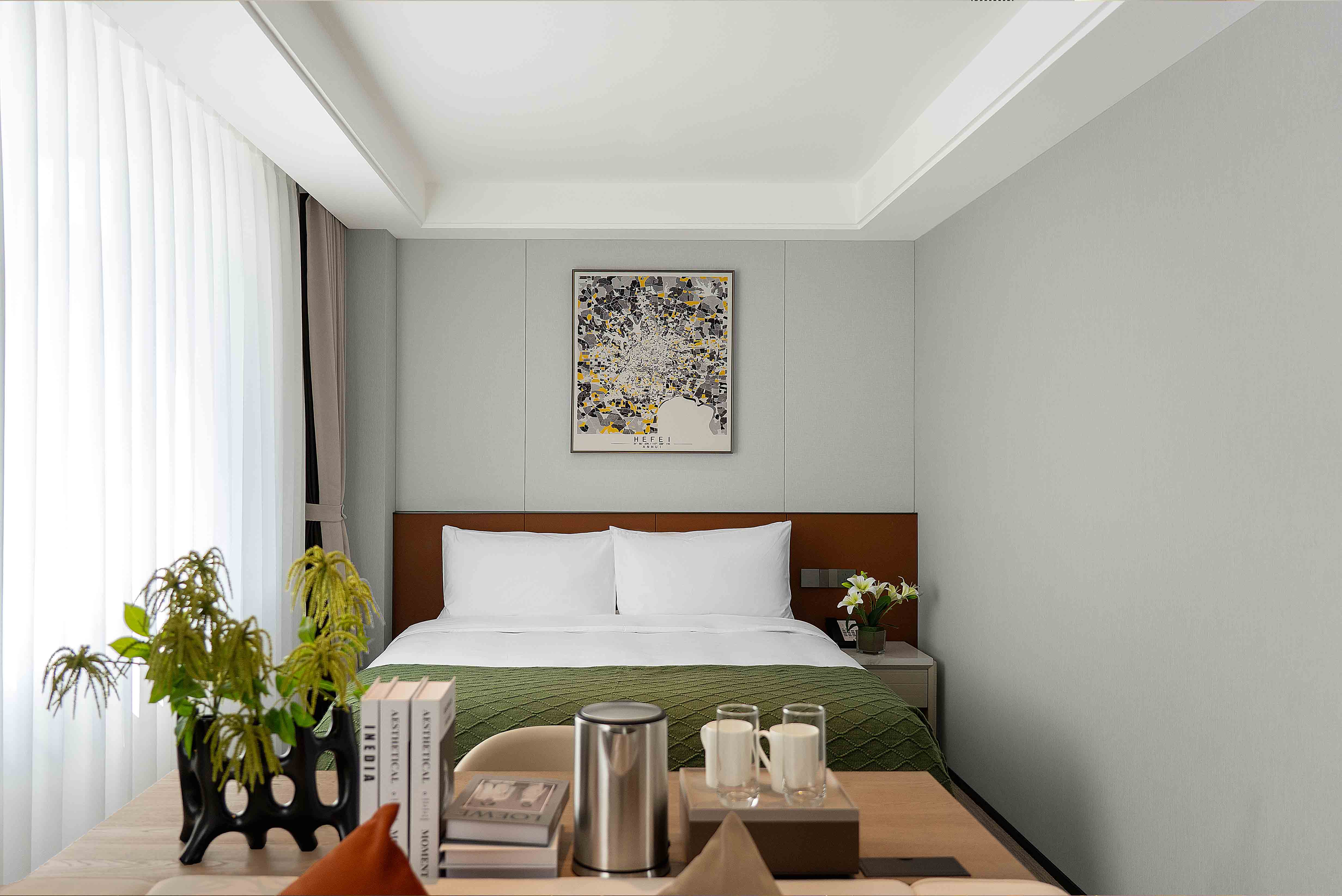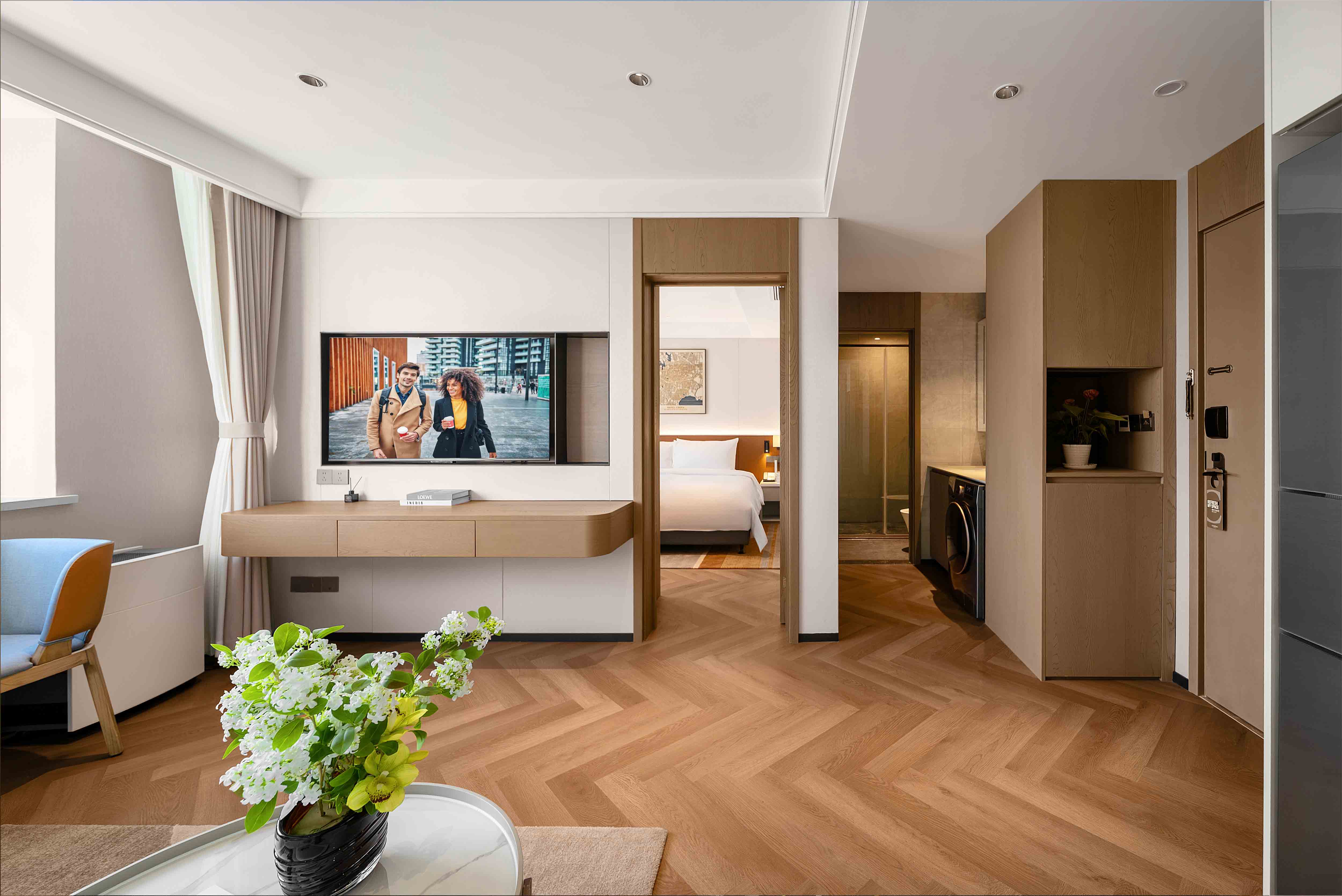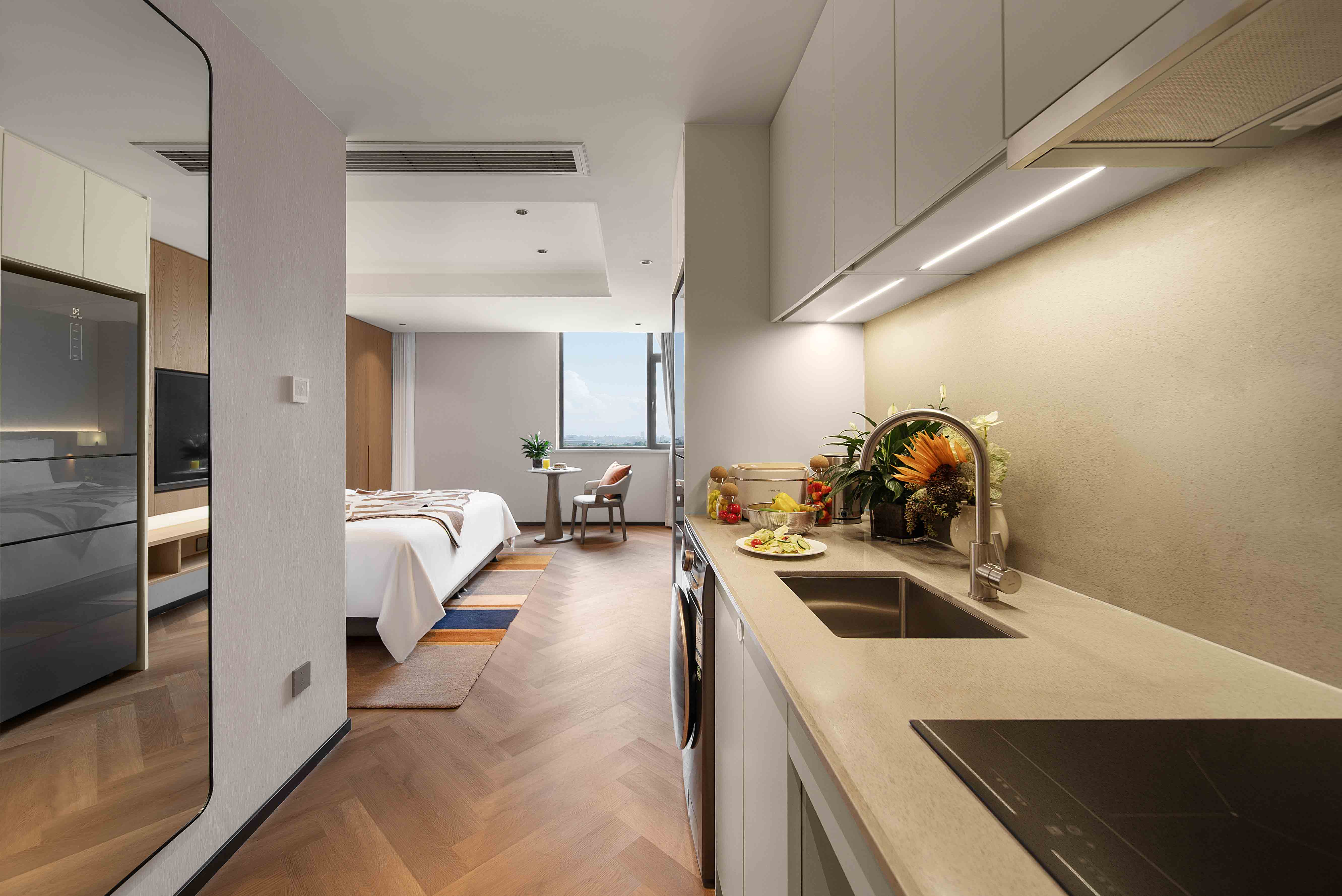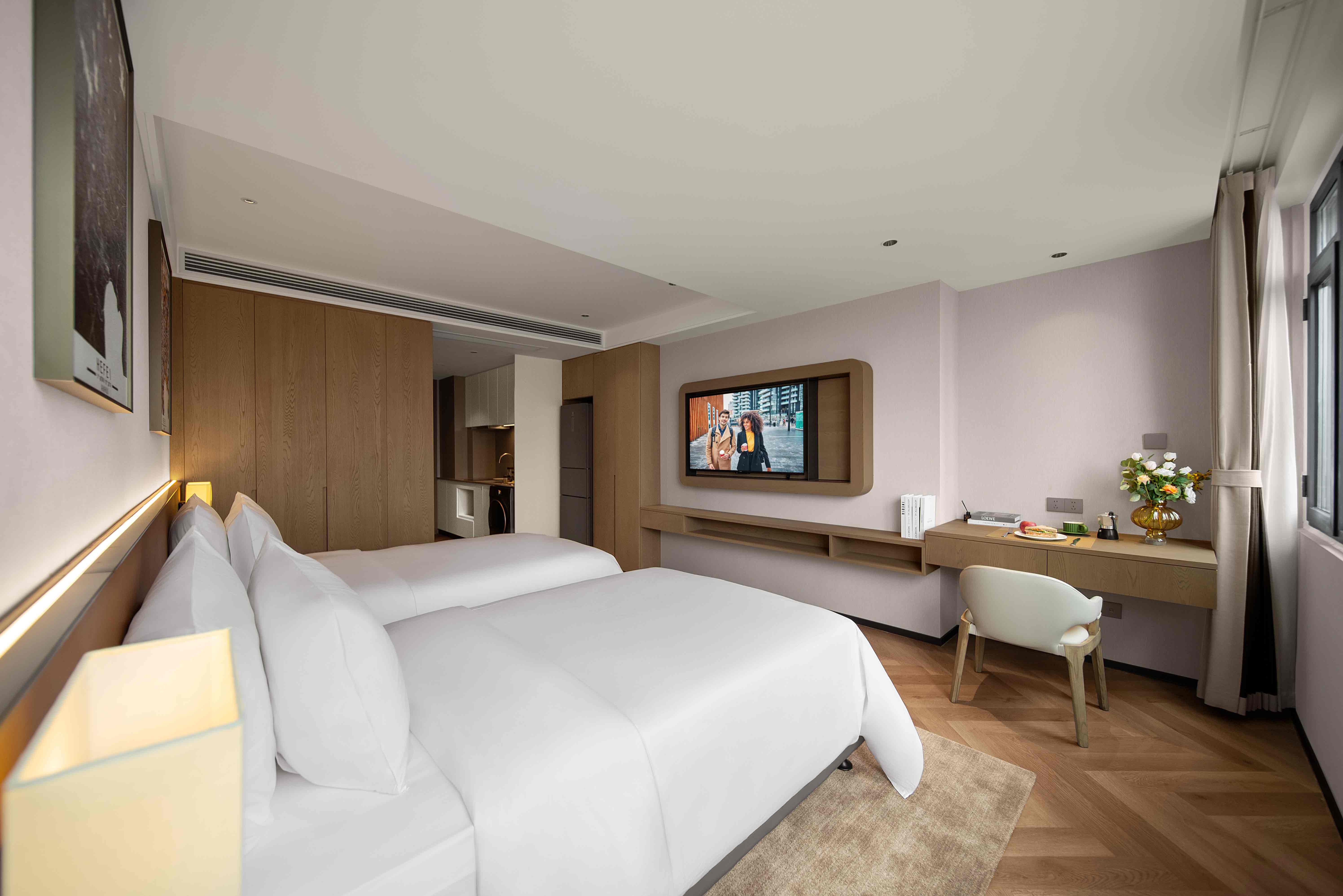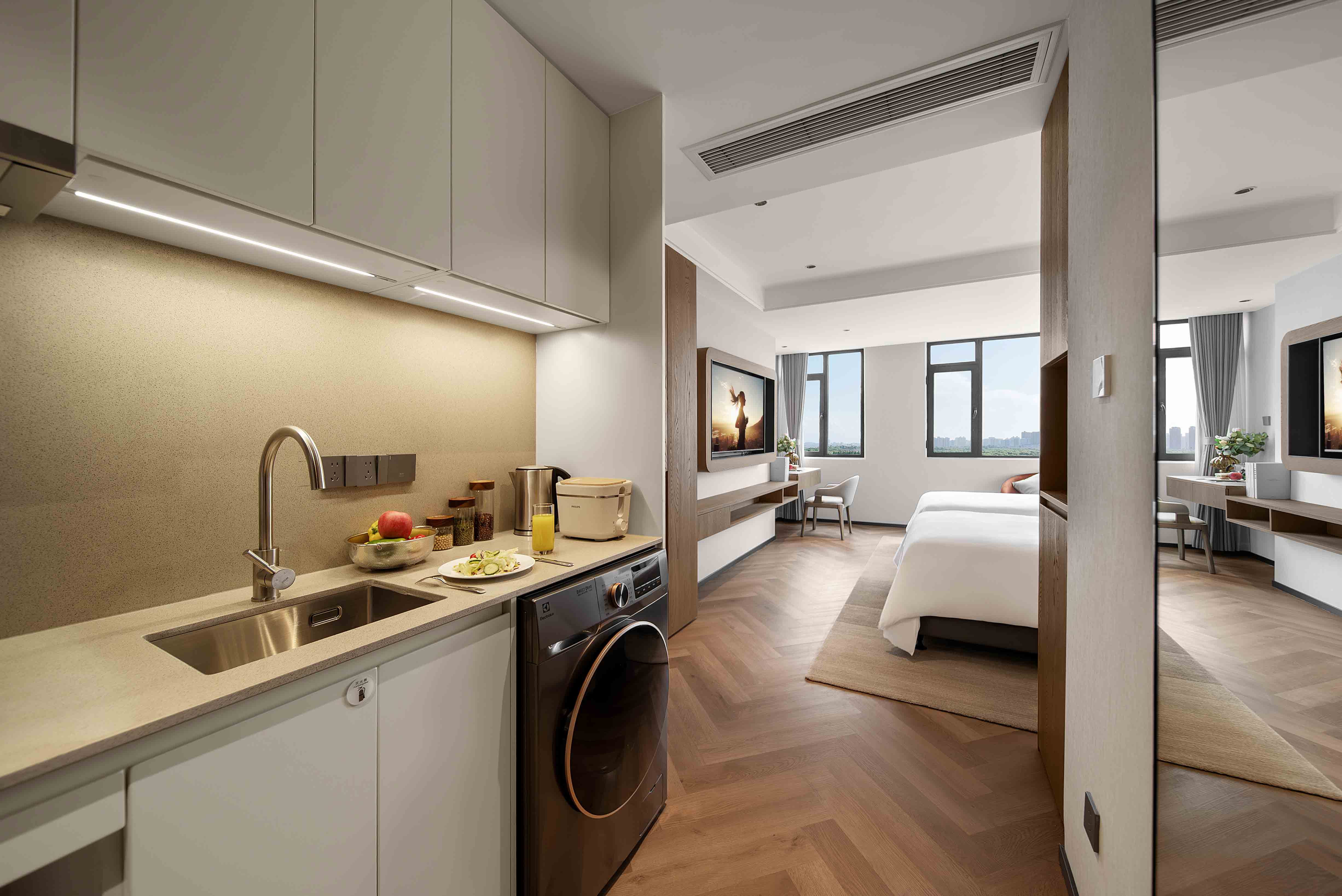 The meticulously designed property offers 182 well-appointed suites that blend contemporary style with intuitive comfort, ranging from deluxe studio apartments to spacious two-bedroom suites—each tailored to flexibly accommodate solo travelers, couples, and families alike. Subtle Hefei-inspired touches are woven into the soft furnishings, including artwork that reflects the city’s unique culture. Every suite embodies Citadines’ “thoughtfully designed home” philosophy, with a living area, dedicated dining space, fully equipped kitchen (complete with a refrigerator and washer-dryer combo), and a premium audio-visual system. These amenities recreate the warmth and convenience of home in every detail—from daily routines to leisure moments—easing concerns for both short stays and extended residences.