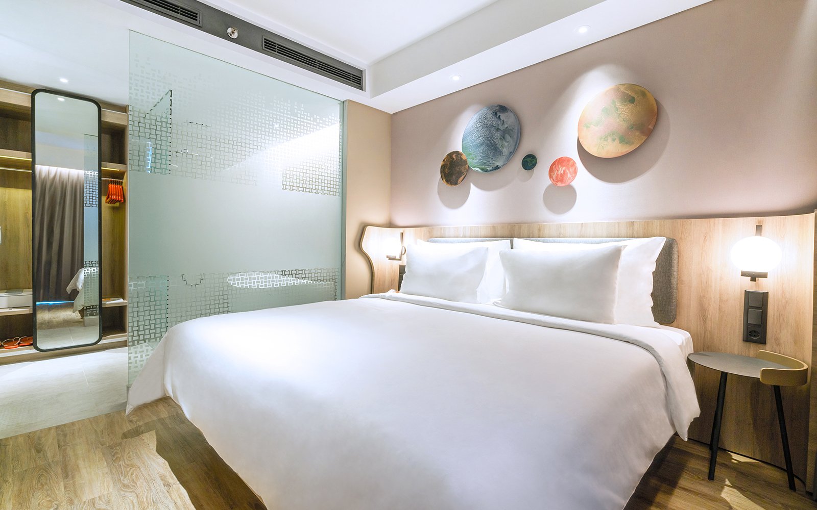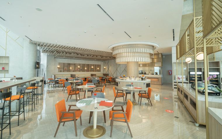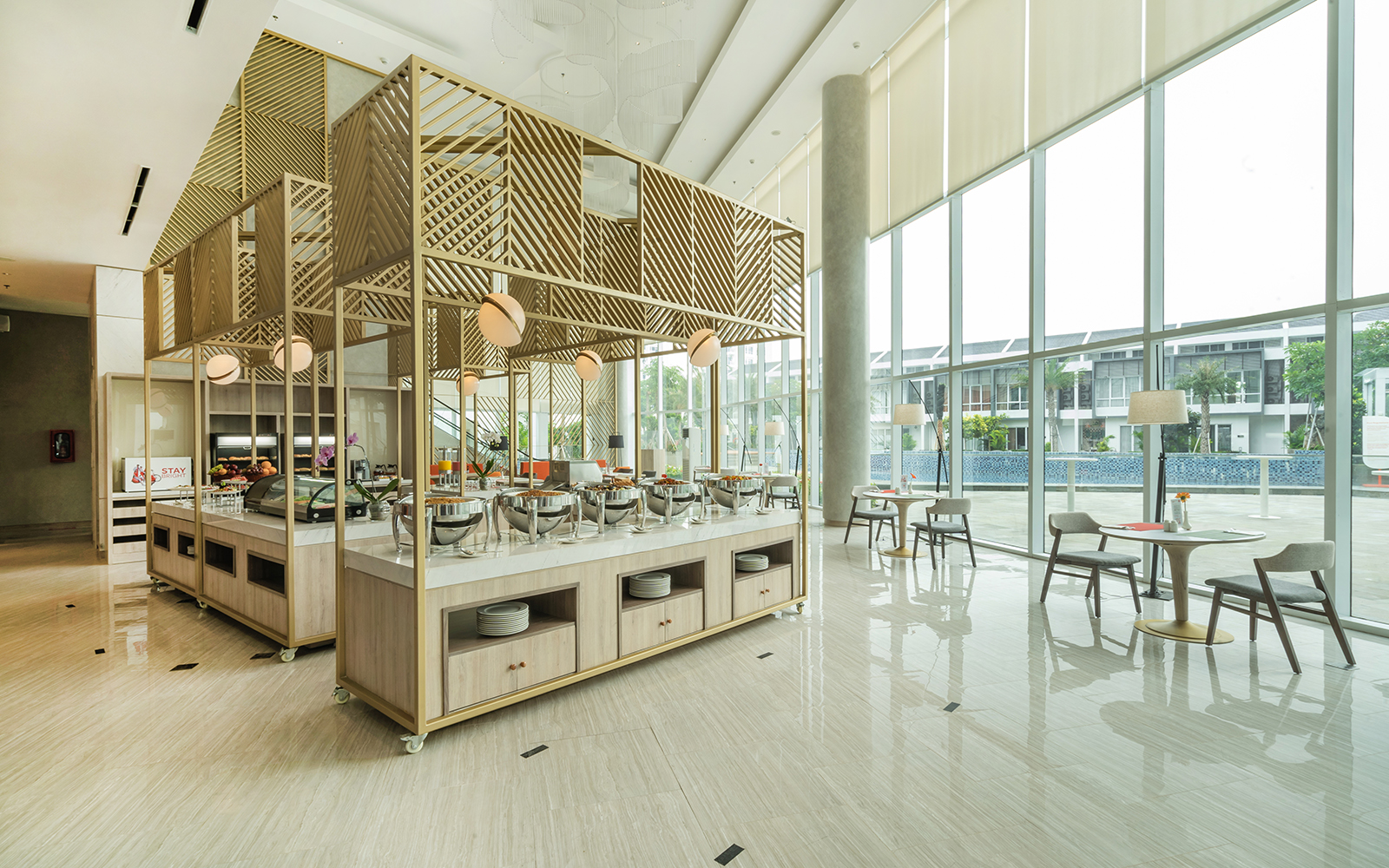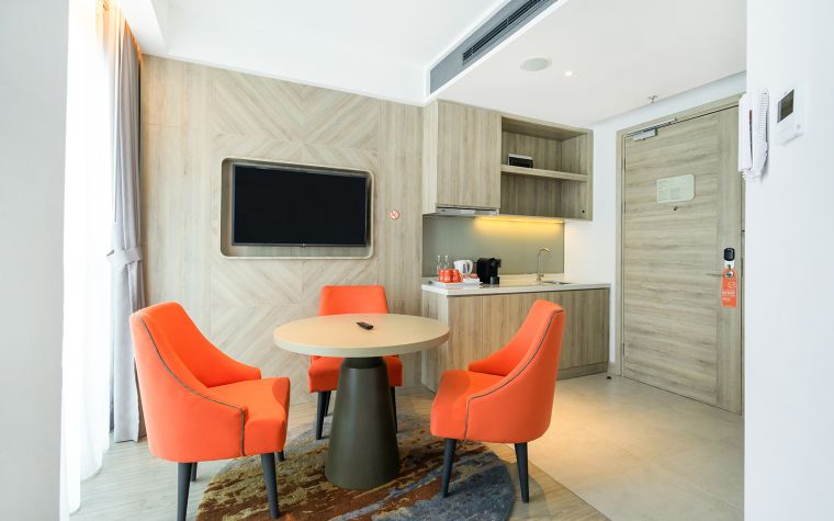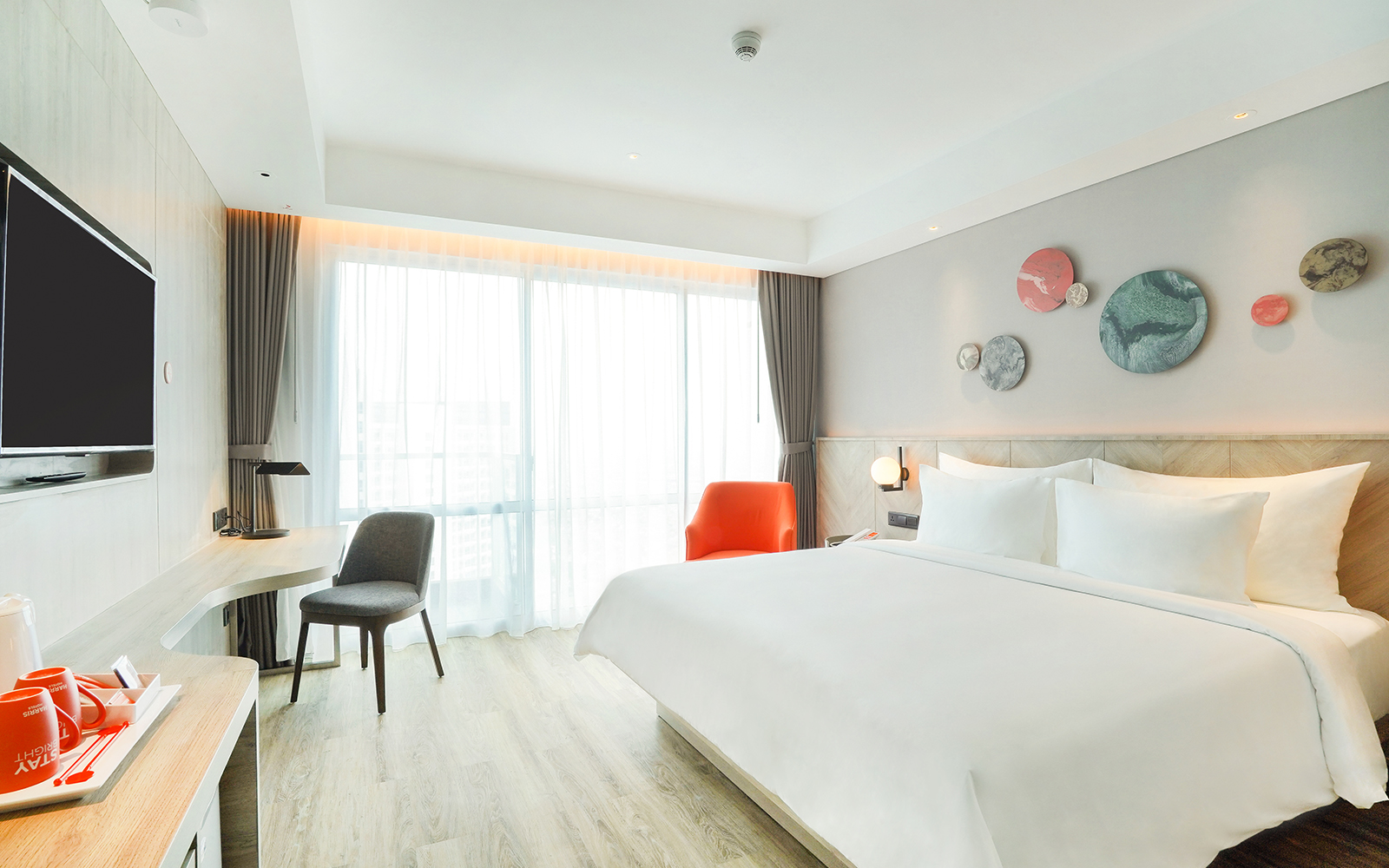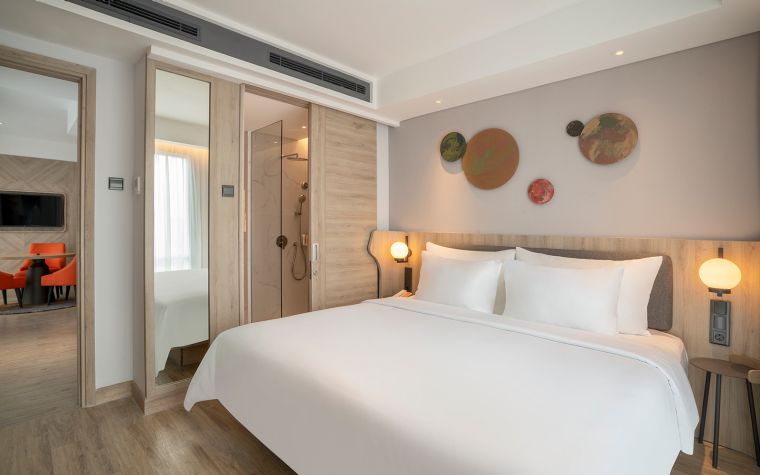 The hotel features 192 modern rooms with three distinct types, each showcasing a unique and welcoming style. Every room is equipped with complete facilities such as free Wi-Fi, flat-screen TVs, and comfortable work areas, ensuring a pleasant and productive stay. The elegant interior creates a warm and welcoming atmosphere for every guest.