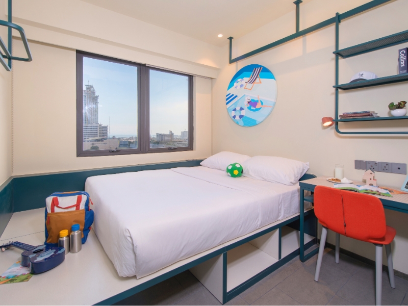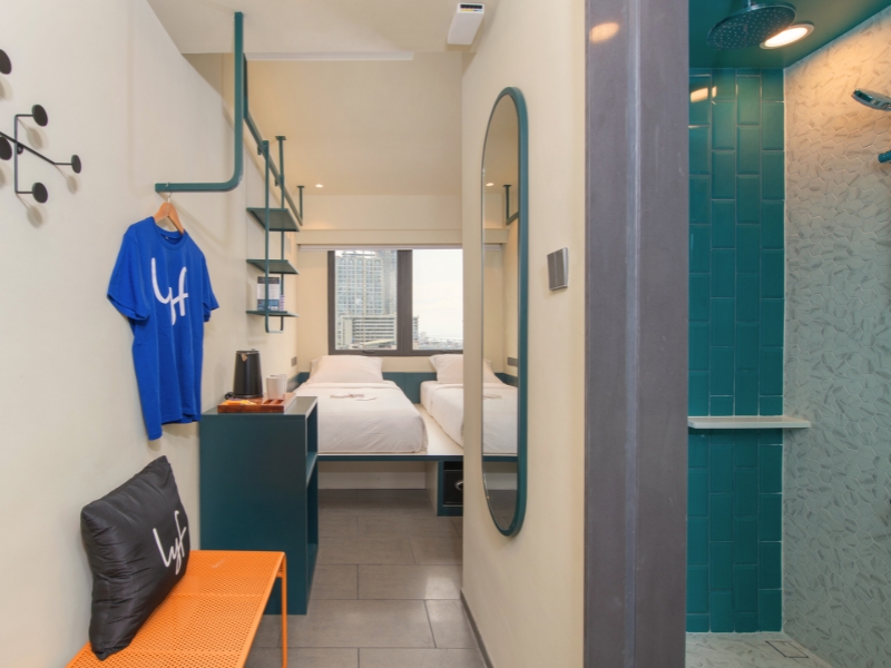 The experience-led social living concept integral to lyf is best witnessed through its different room types. At lyf Cebu City, choose among the following layouts: One of a Kind (Studio), Side by Side (Twin Room), and All Together (Two-Bedroom or Four-Bedroom). They are designed for dynamic travelers who are on the move and values the social aspect of tourism. Distinct interiors, smart storage solutions, and curtain dividers merge versatility and privacy. You will enjoy your stay while being part of a community within the property.