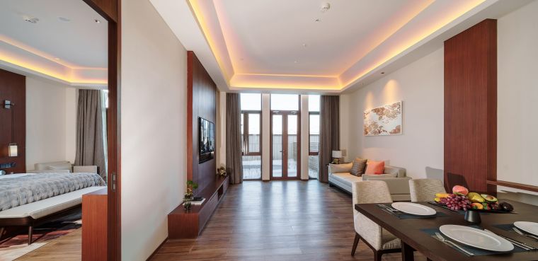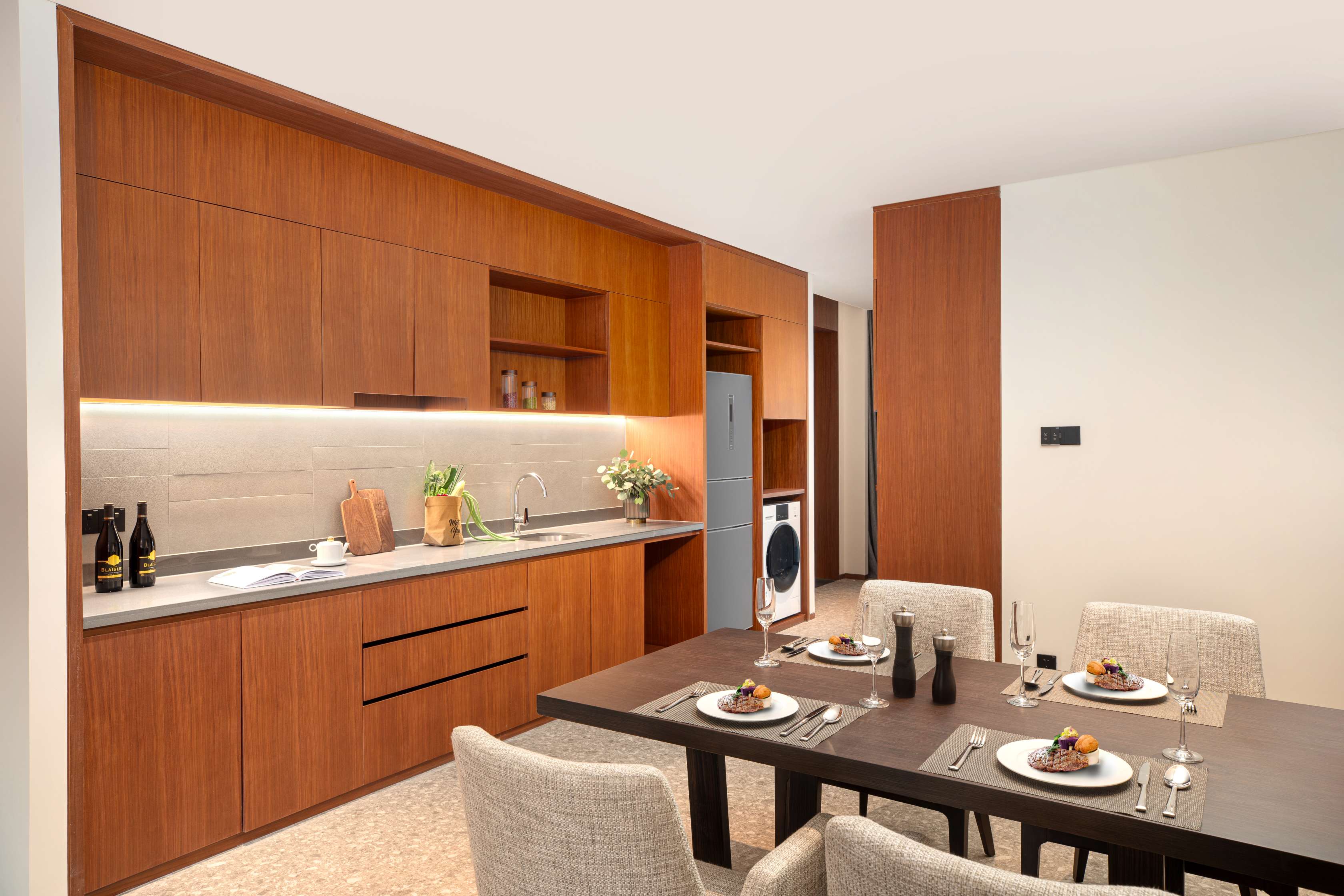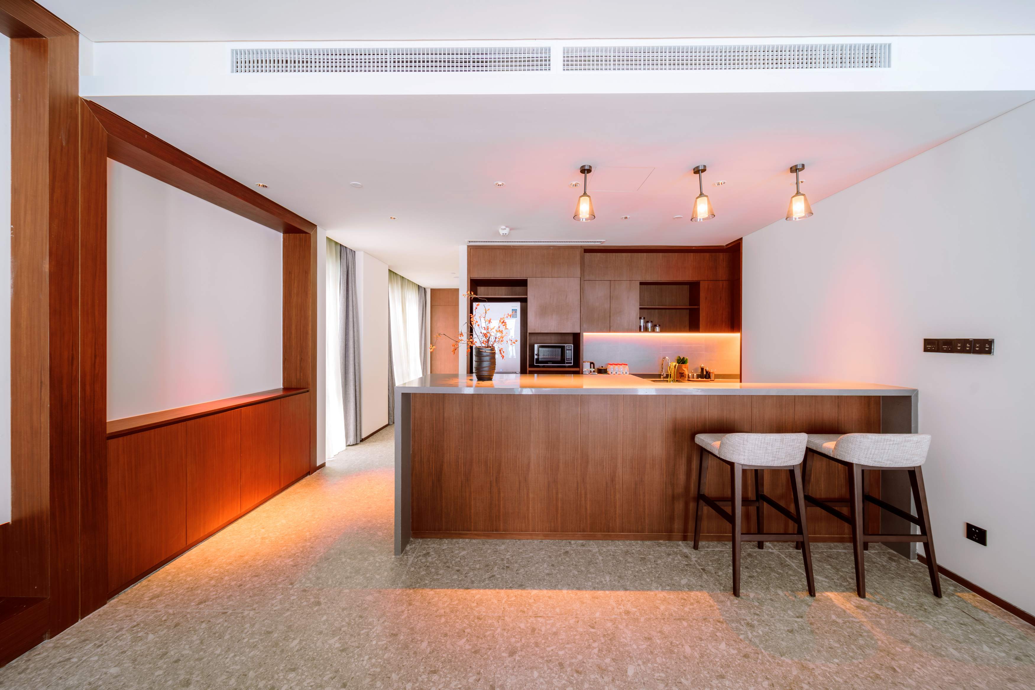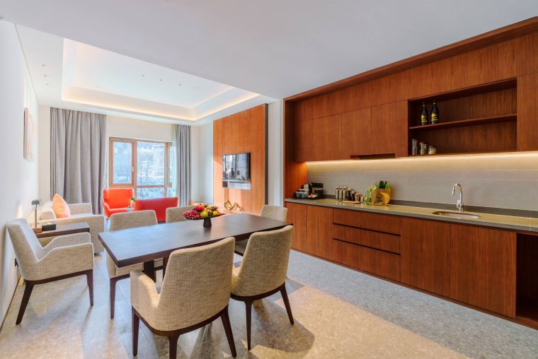 In the design of the hotel apartment, natural beauty can be seen everywhere, combining the visual extension of mountains with the serene Zen atmosphere. Here, you can take a break at the lobby bar or tea bar and enjoy a special cocktail or a cup of tea. Take a look at the scenery outside the window and prepare for an upcoming dialogue with nature. We carefully prepare a variety of delicious food for you and take good care of your meals everyday at the all day dining. Fitness facilities such as a gym, swimming pool, jacuzzi and sauna etc. help you stay energized at all times.