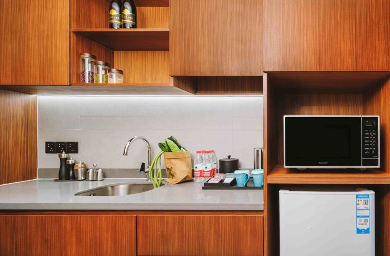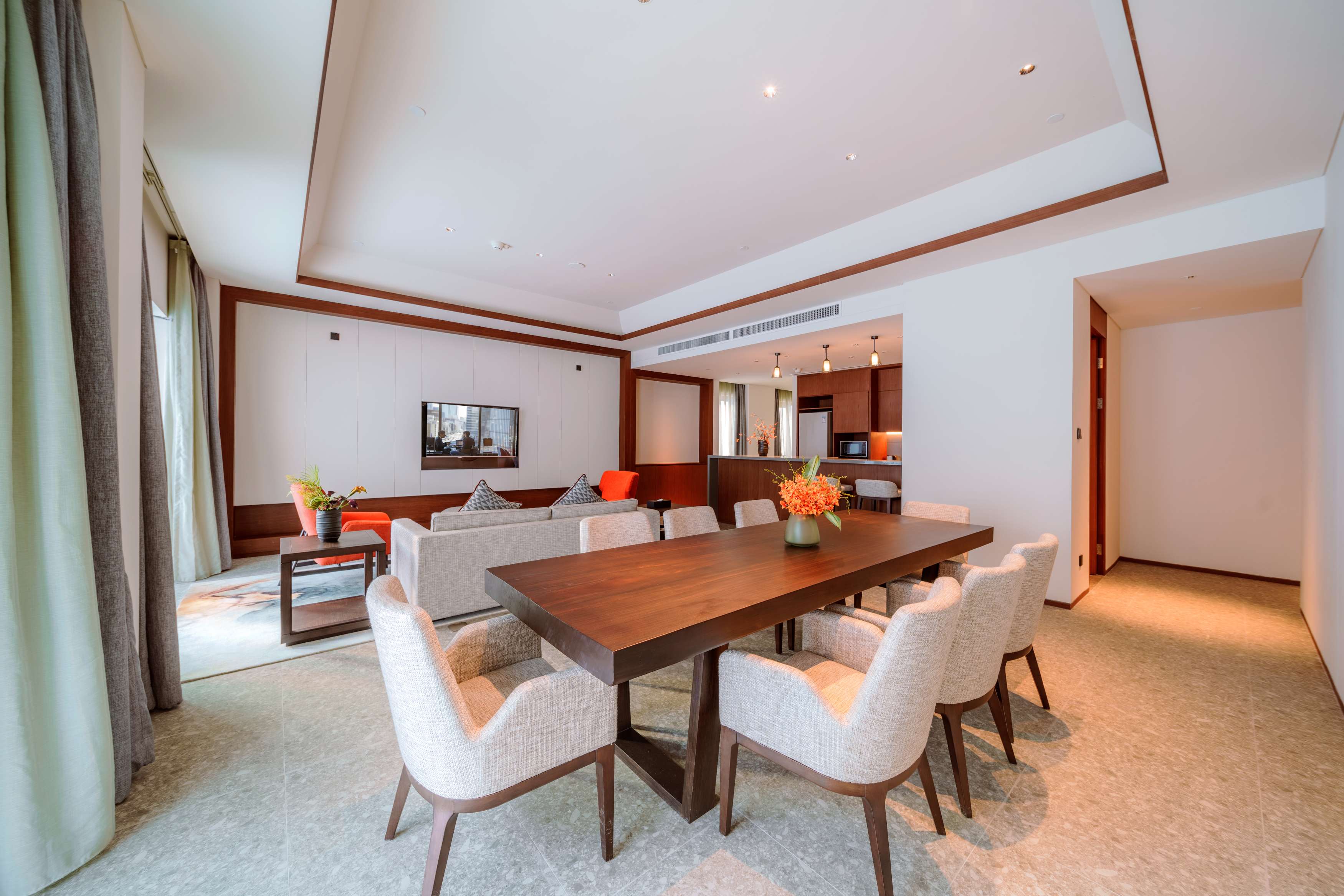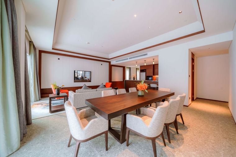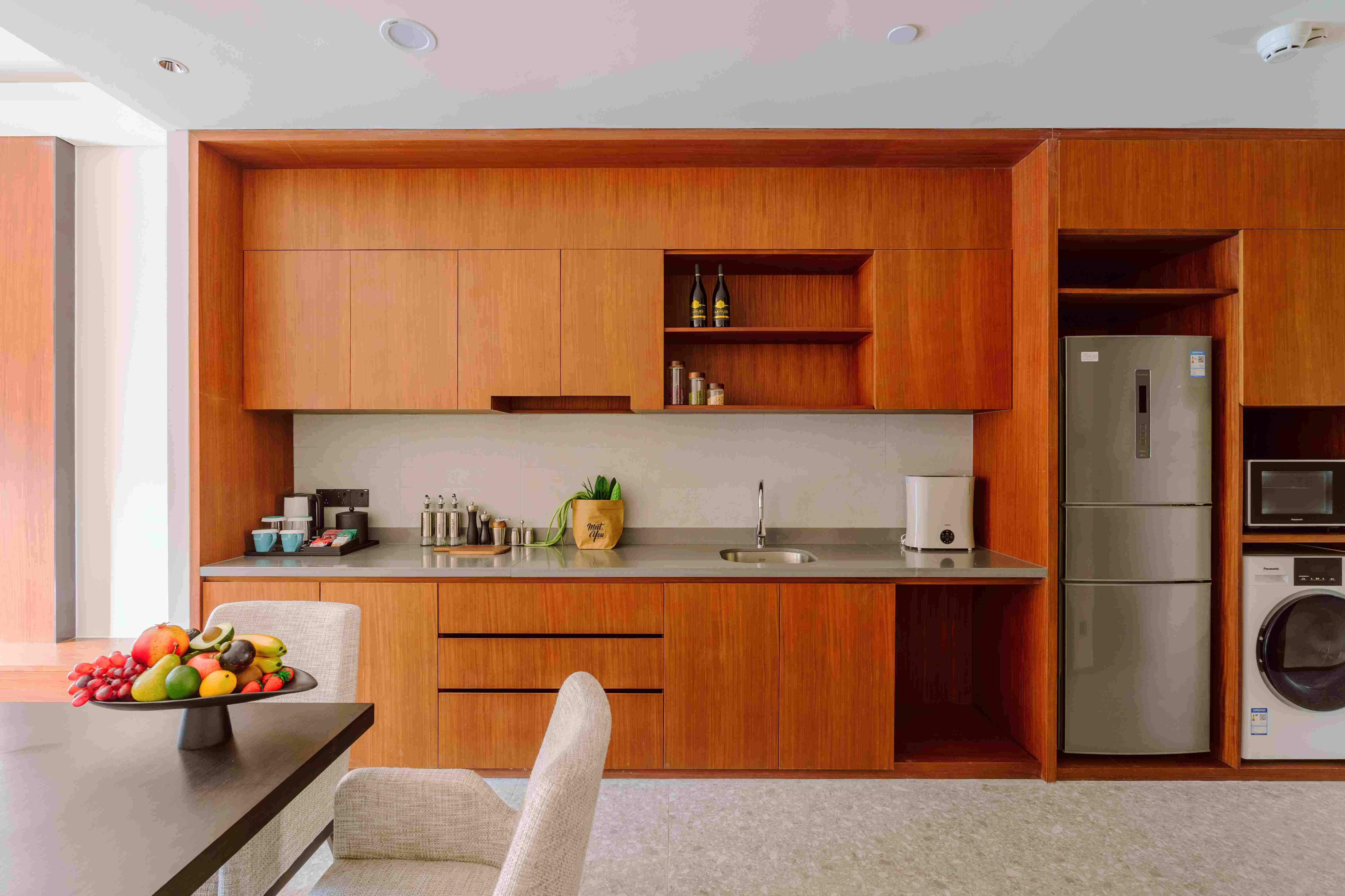 In the design of the hotel apartment, natural beauty can be seen everywhere, combining the visual extension of mountains with the serene Zen atmosphere. Here, you can take a break at the lobby bar or tea bar and enjoy a special cocktail or a cup of tea. Take a look at the scenery outside the window and prepare for an upcoming dialogue with nature. We carefully prepare a variety of delicious food for you and take good care of your meals everyday at the all day dining. Fitness facilities such as a gym, swimming pool, jacuzzi and sauna etc. help you stay energized at all times.