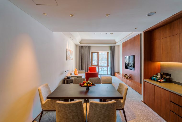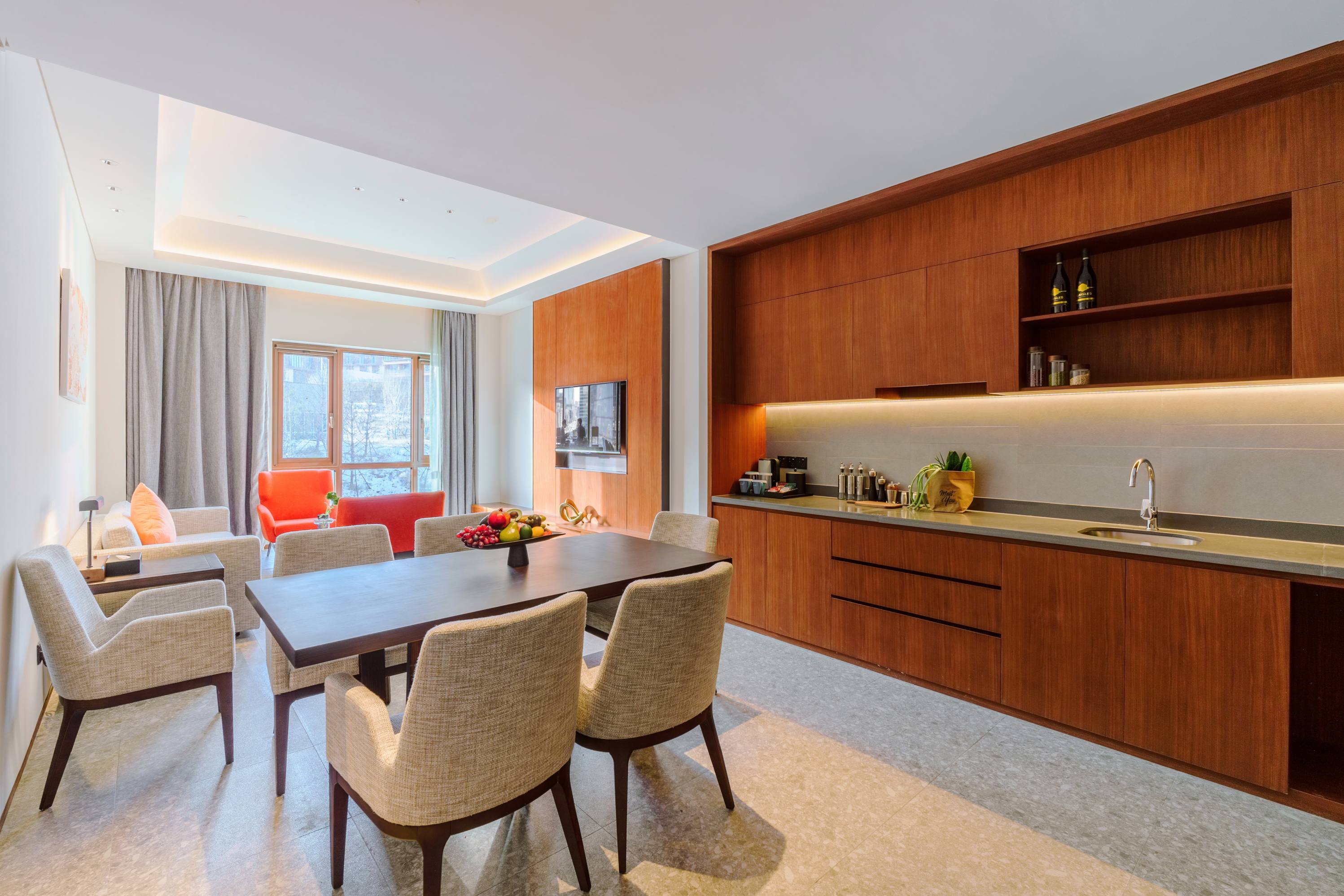 During your stay with us at this exemplary hotel near Ski Resort Chongli, you may engage in dialogue with nature through various sensory experiences, breathe the fresh air, listen to the chirping of birds in the mountains, bask in warm sunshine, and regain vitality and energy. Ranging from studio, 1-to-2 bedroom suites, our 136 guest rooms are distributed in the two buildings. Each room provides spacious living space, high-end furniture and appliances, and a fully equipped kitchen. Make yourself relaxed and comfortable during your stay, and enjoy an amazing holiday life.