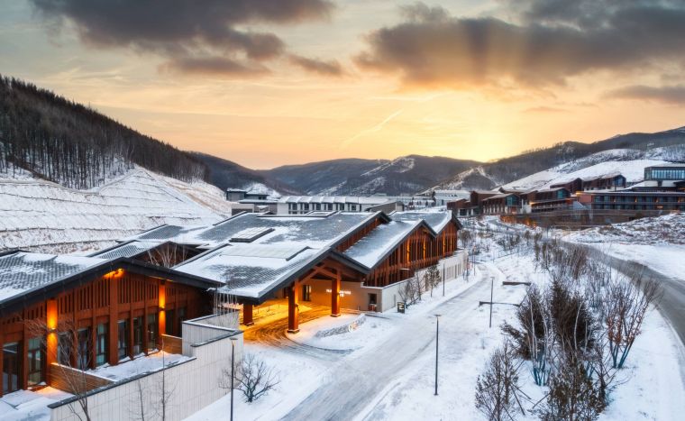 Located in the Taizicheng Resort, Oakwood Suites Chongli is built against the mountain, with a delicate design style that blends the building with the surrounding nature.