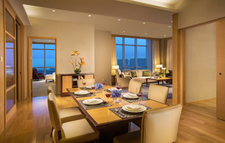 A perfect home for executives and their families, each of our 195 residences, ranging from one-bedroom to three- bedroom apartments and penthouses, is furnished in a warm and elegant style featuring a spacious living room, with a separate dining area and a fully-equipped kitchen that is any homemaker's dream. Moreover, you can also enjoy an easy and efficient business environment with WiFi in your apartment and all public areas. A 24-hour security system also ensures a safe living environment for you and your family.