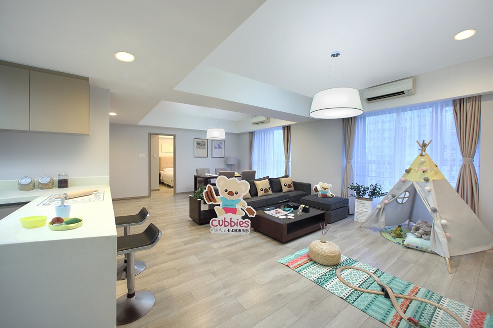 Each apartment offers with individual bedroom, living room, dining area and fully-equipped open kitchen. The in-built floor heating system and individually controlled air conditioning system keep you warm and comfortable in the colder months.