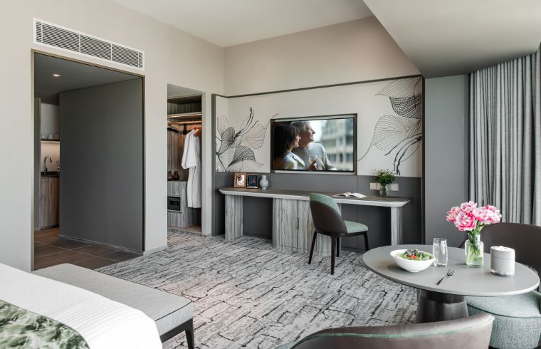 エレガントなお部屋には終日ご利用いただけるレストラン、プールバー、ビジネスおよびレクリエーション施設を完備。バンケット施設、ミーティングルーム、インフィニティプール、ジム、レジデンツラウンジ、お子様用プレイルーム、お子様用プレイグラウンド、屋外および専用バーベキューエリアなどをご用意しています。